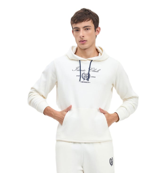White Classic Fit Hoodie With Logo Graphic Sweatshirt