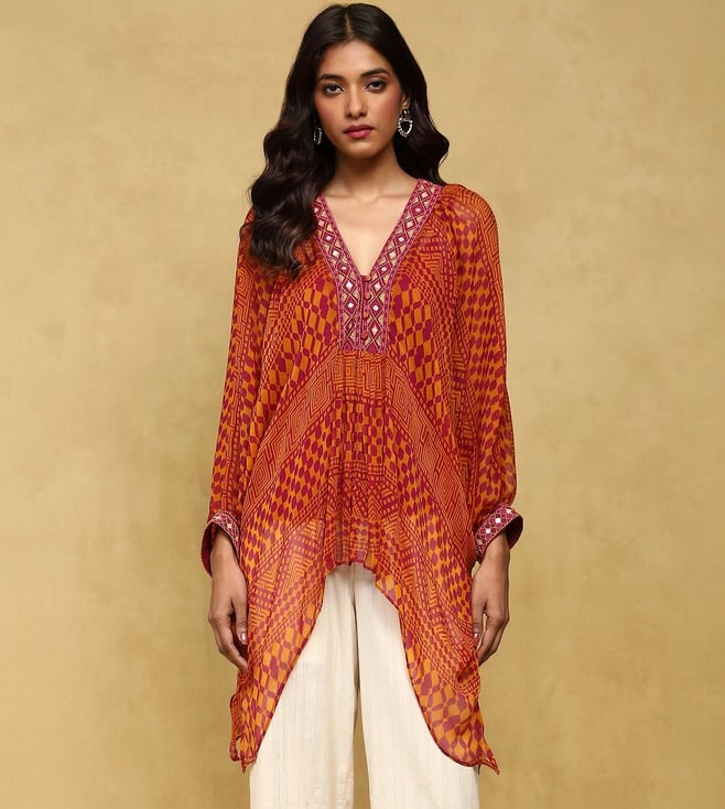 Mustard Baijayanti Printed Viscose Short Top with Camisole
