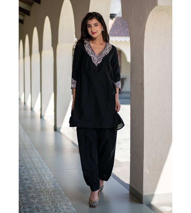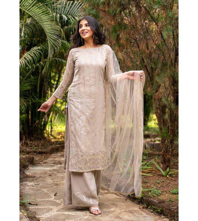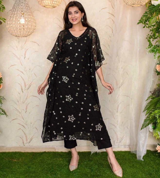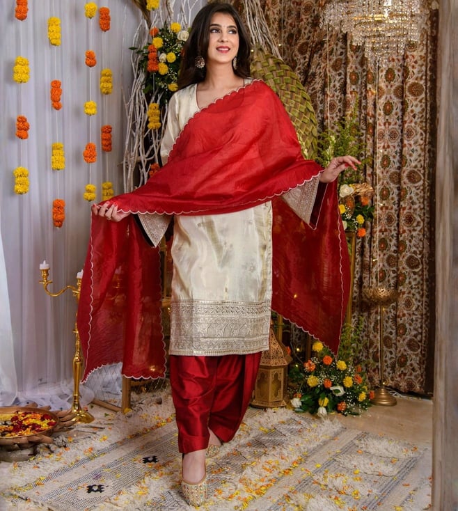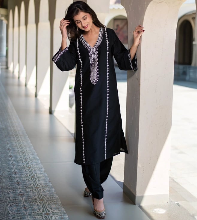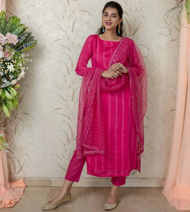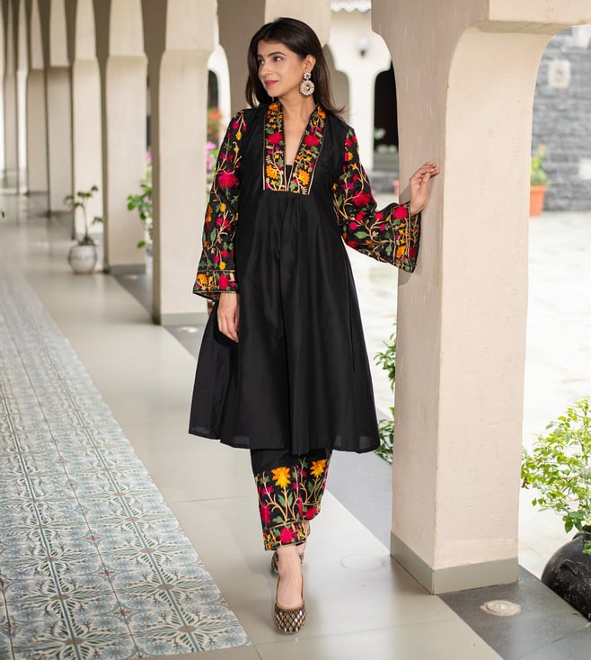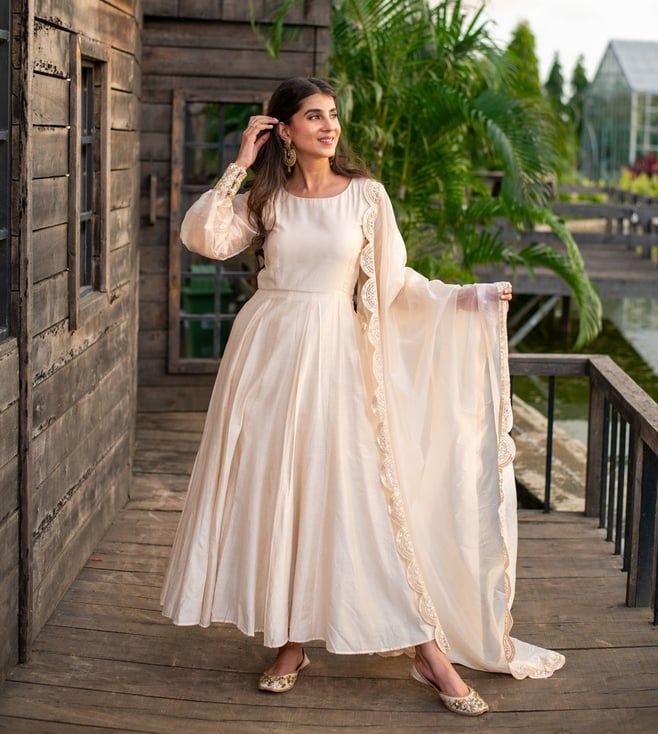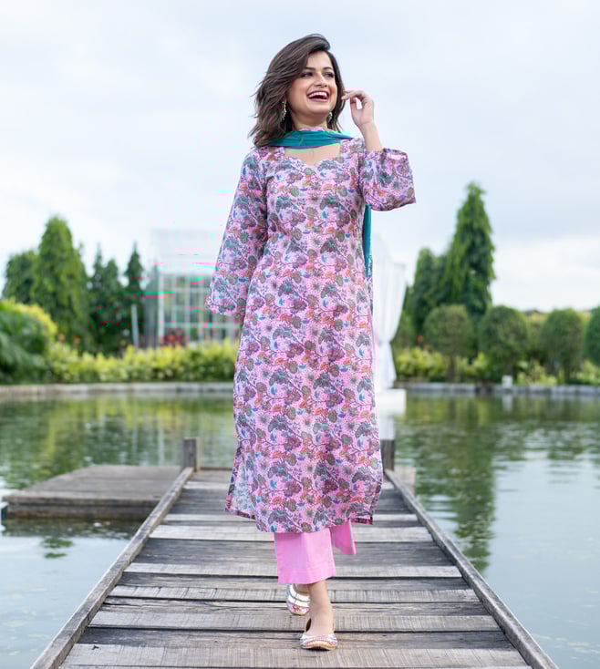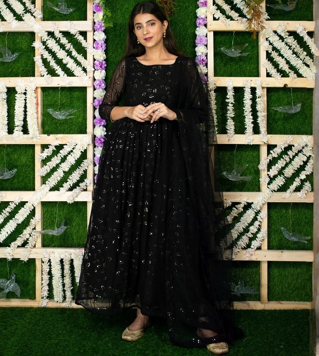 Bottle Green Velvet A Line Kurta with Pant and Dupatta