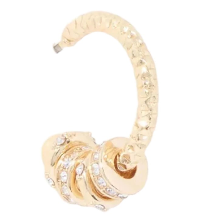Elevate your style with our lacey link hoop earrings. These textured hoops are designed with a cluster of embellished rings, adding instant luxe to any outfit. The gold tone setting exudes elegance, while the push back fastening ensures comfort for pierced ears. Make a statement with these versatile earrings that seamlessly transition from day to night, perfect for adding a touch of sophistication to any look.