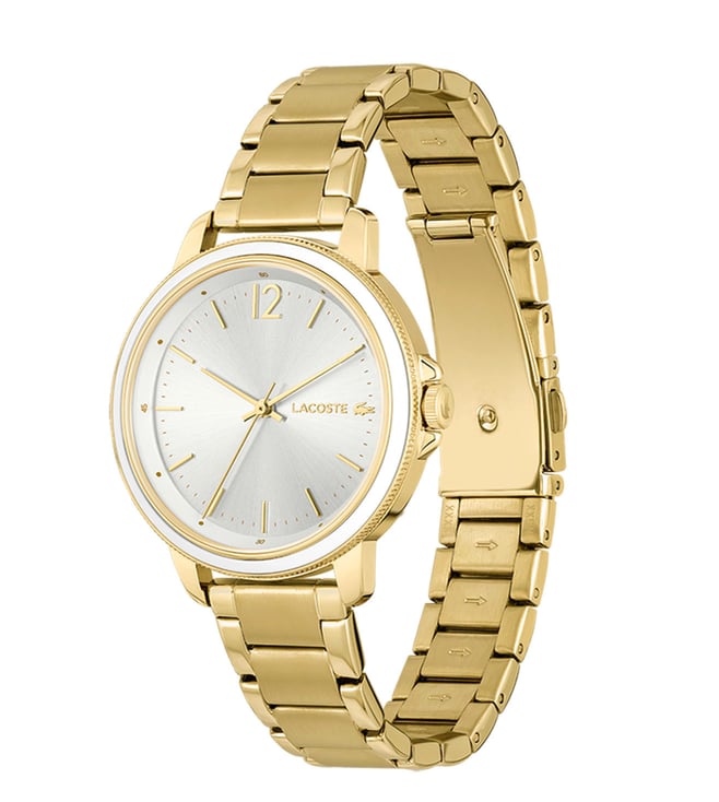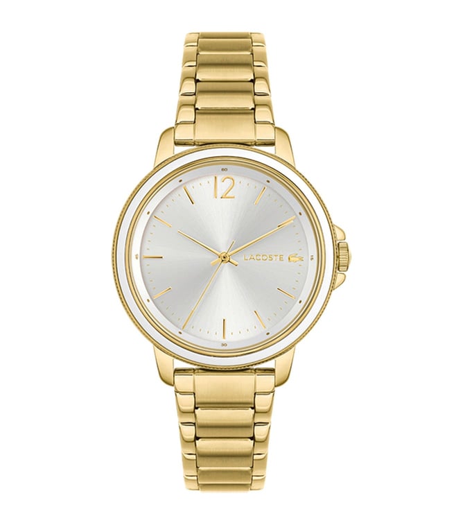 Designed to catch the light, this elegant three-hand watch brings together sports-inspired features and French chic in inimitable Lacoste style. The stainless steel case of the watch, is adorned with crown protection and complemented by a coin-edge bezel in soft-touch silicone. A sunray dial with reflector ring features eye-catching branding at 3 o'clock, accompanied by a distinctive combination of applied metal stick indices and a single Arabic numeral. This spectacular Lacoste watch draws on the tennis heritage of the brand in a new and modern way with the Slice timepiece for her.