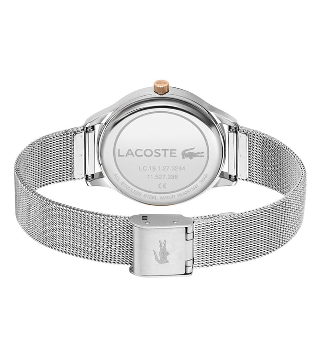 A slim and elegant multifunction watch with a polished case, the Lacoste club is detailed with day, date and hour sub-eyes, and secures with a smooth leather or stainless steel strap. The semi-gloss dial features a center zone with diagonal stripes for a sporty touch, and is finished with the instantly recognizable Lacoste crocodile. A variety of color options offer the choice between a timeless and a trend-driven look. The watch comes with a dial diameter of 34 mm.