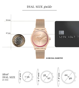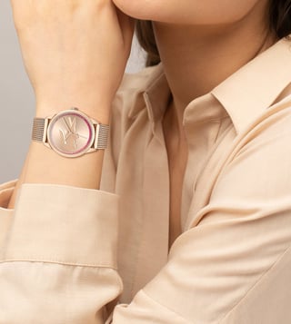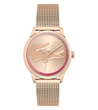 These sophisticated watches by Lacoste are intrinsically elegant and seduce with their elegant soul. With a number less dial and metal bracelet, this watch celebrates femininity. The sleek dial further sits pretty in the center and exudes sheer sophistication. Moreover, it is fitted with a deployment clasp that ensures a secure fit on the wrist.