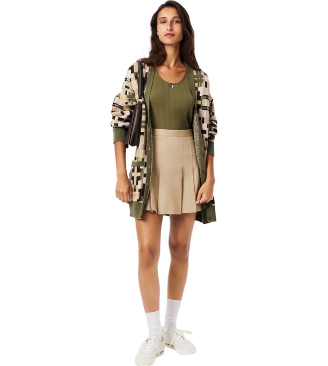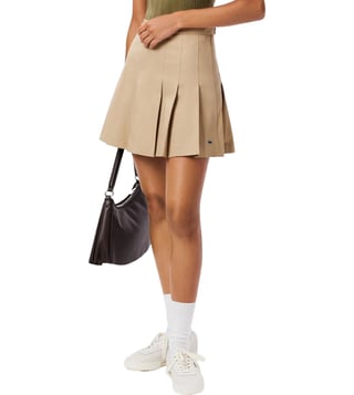 Lacoste Beige Mid Rise Regular Fit Mini Short Stretch Pleated Skirt