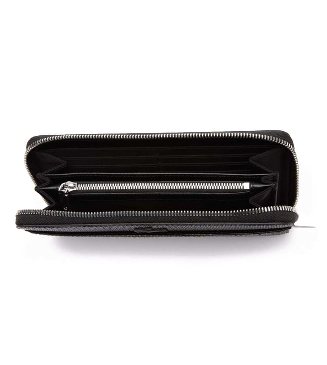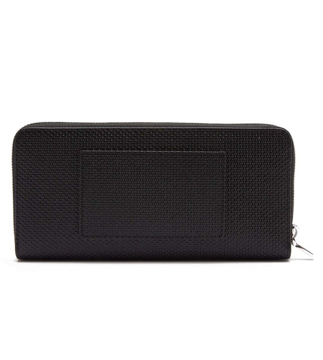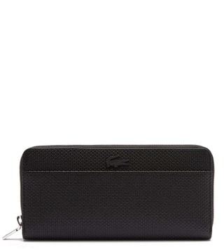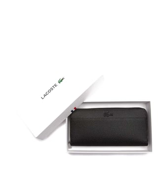 Keep your monetary essentials in place and safe with this wallet from Lacoste. It has one exterior flat pocket and one card slot. The interior includes twelve card slots and one pocket. It features zippered fastening and crocodile branding for a signature look.