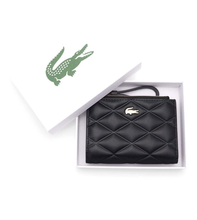 Lacoste Black Crocodelle Quilted Small Leather Coin Purse