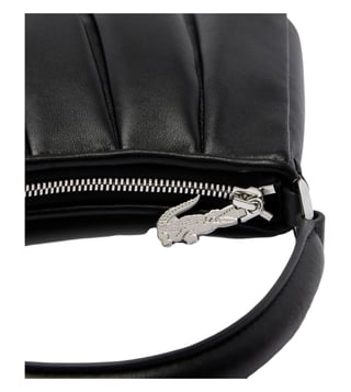 Lacoste Black Runway Lenglen Textured Leather Large Satchel