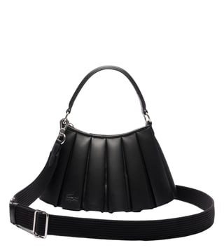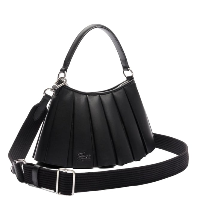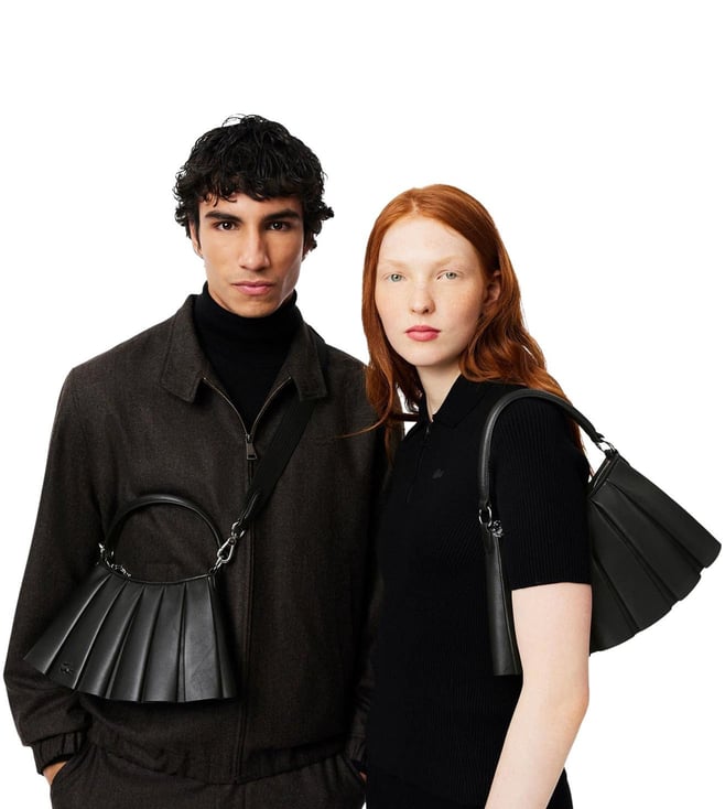 Elevate your style with the Lacoste black runway lenglen textured leather large satchel. Crafted from high-quality textured leather, this spacious satchel combines sophistication with practicality. With its sleek black design and iconic Lacoste logo, this bag is perfect for both work and play. Featuring multiple compartments and a detachable shoulder strap, this satchel is the ultimate combination of style and functionality. Make a statement with this luxury accessory that will effortlessly complement any outfit.