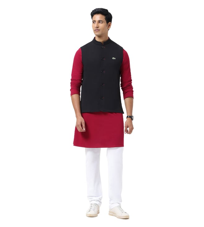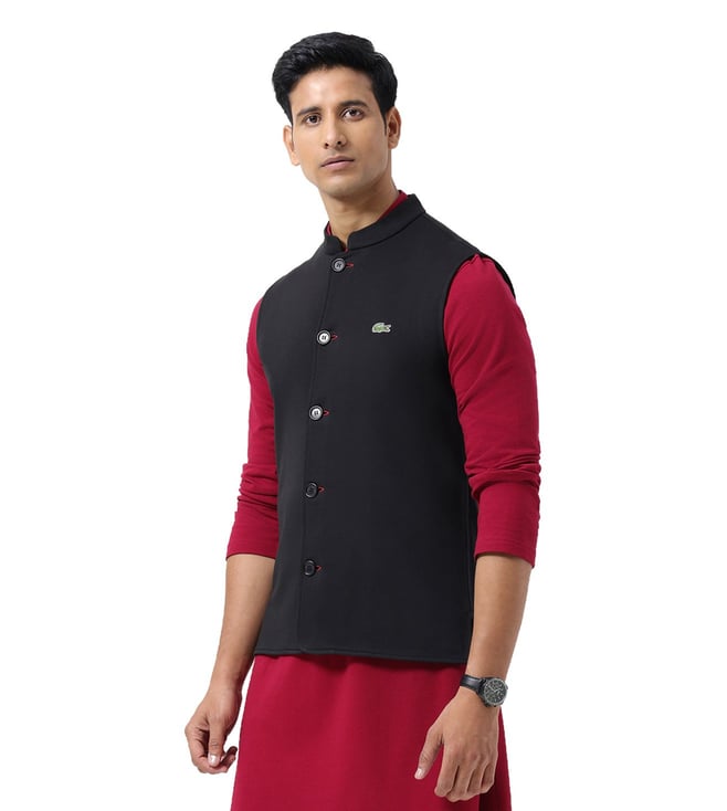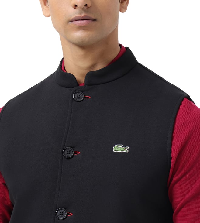 Elevate your style with the Lacoste Black Slim Fit Jacket. This modern twist on a classic design features a sleek silhouette that flatters your figure while exuding sophistication. Crafted from high-quality fleece fabric, this jacket offers both style and comfort, making it the perfect choice for any occasion. Whether you're dressing up for a night out or adding a touch of elegance to your everyday look, the Lacoste Jacket is sure to make a statement. Upgrade your wardrobe with this versatile piece that effortlessly combines timeless appeal with contemporary flair.