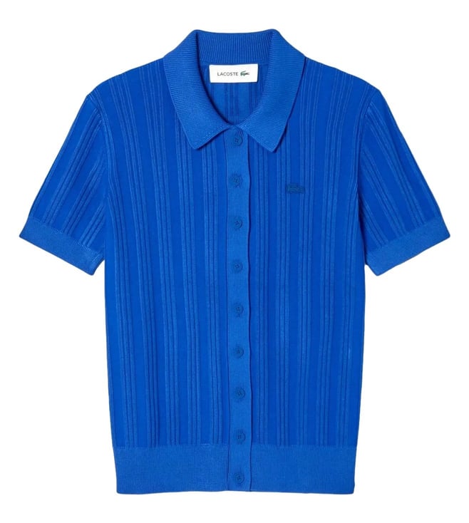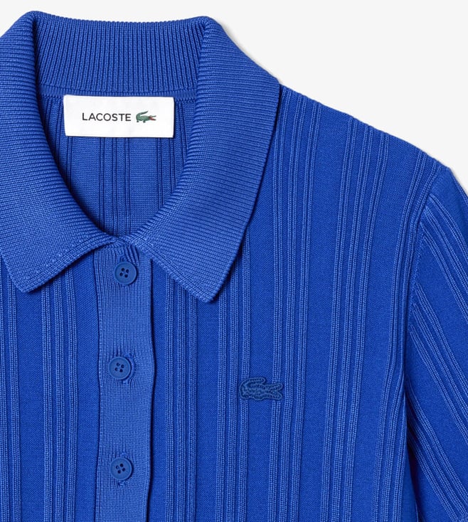 Elevate your style with the Lacoste blue ribbed knit striped regular fit sweater. Crafted with premium materials, this sweater offers a perfect balance of comfort and sophistication. The classic striped design adds a touch of timeless elegance to any outfit, while the regular fit ensures a flattering silhouette for all body types. Whether you're heading to the office or a casual weekend brunch, this sweater is versatile enough to suit any occasion. Stay cozy and chic with the Lacoste blue ribbed knit striped regular fit sweater.