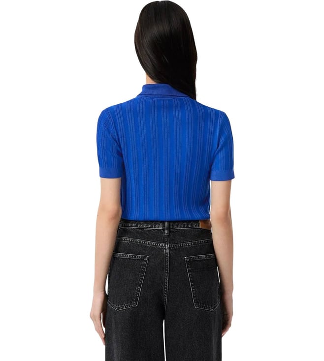 Lacoste Blue Ribbed Knit Striped Regular Fit Sweater