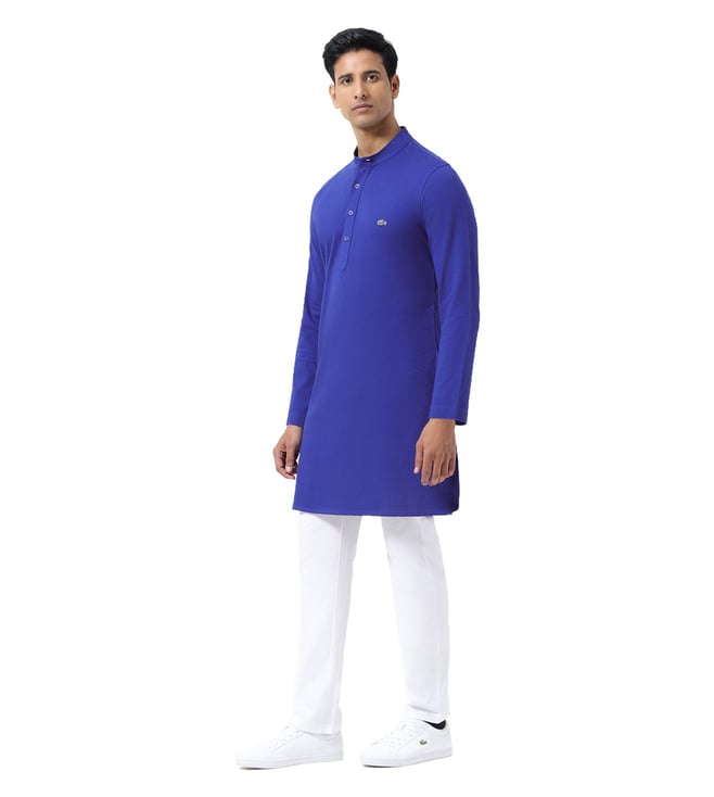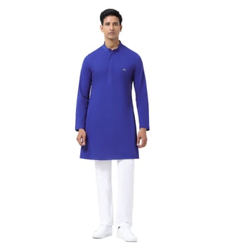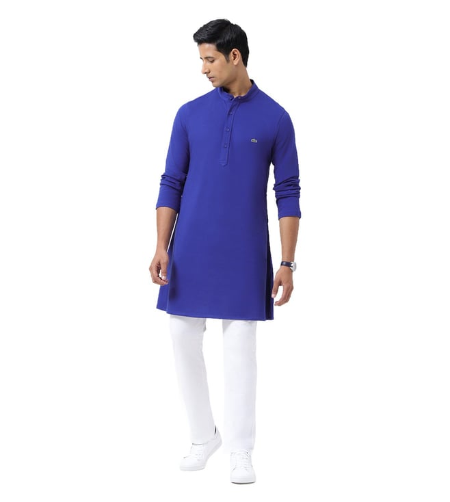 Elevate your style with the Lacoste Blue Slim Fit Kurta. Crafted with precision and designed for the modern man, this kurta offers a sleek silhouette that effortlessly flatters your physique. The vibrant blue hue adds a pop of color to your wardrobe, while the slim fit ensures a sharp and tailored look. Whether you're dressing up for a special occasion or simply want to add a touch of sophistication to your everyday attire, this kurta is the perfect choice. Make a statement with the Lacoste Blue Slim Fit Kurta and stand out from the crowd with confidence and style.