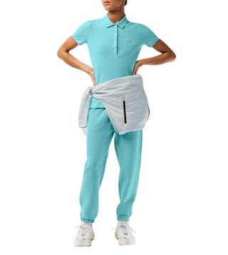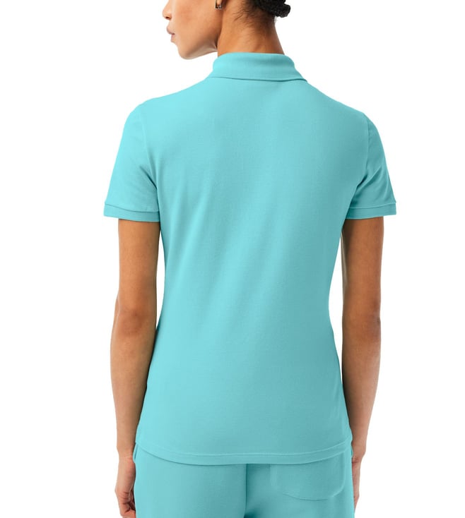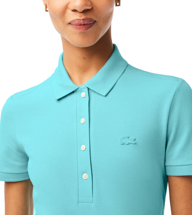 Women's Lacoste Slim fit Stretch Cotton Pique Polo Shirt. Stretch mini cotton pique. Mother of pearl four-button ribbed polo collar. Slim fit. Ribbed finishes at sleeve ends. Embroidered tonal crocodile branding on chest. Cotton (94%), Elastane (6%).