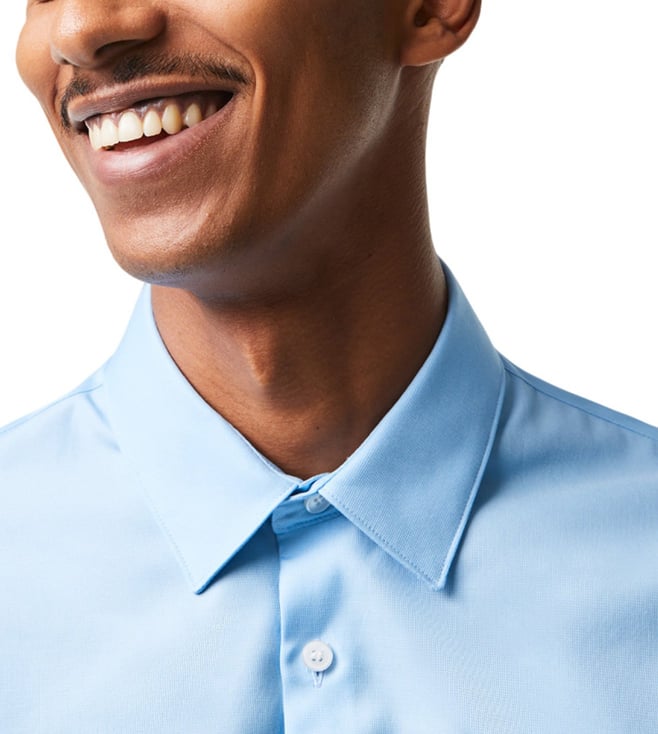 The fine fabric with a gentle, silky texture makes this shirt ultra-elegant. With signature buttons and exquisite finishes, it is topped with a small tone-on-tone embroidered crocodile on the chest pocket. Keep it elegant when you tuck it into solid suit pants.