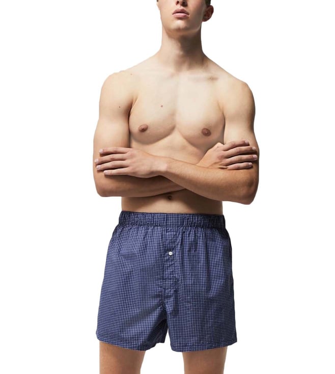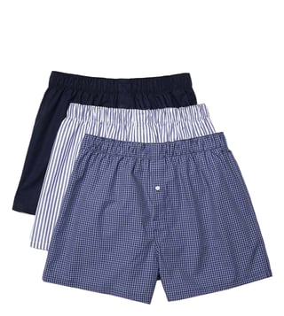 Get these 3 pairs of boxers with a classic fit that make for comfort and freedom of movement. This pack comprises one pair of striped boxers, one checkered pair and one plain pair. These come with a mid rise that adds to the comfort factor.