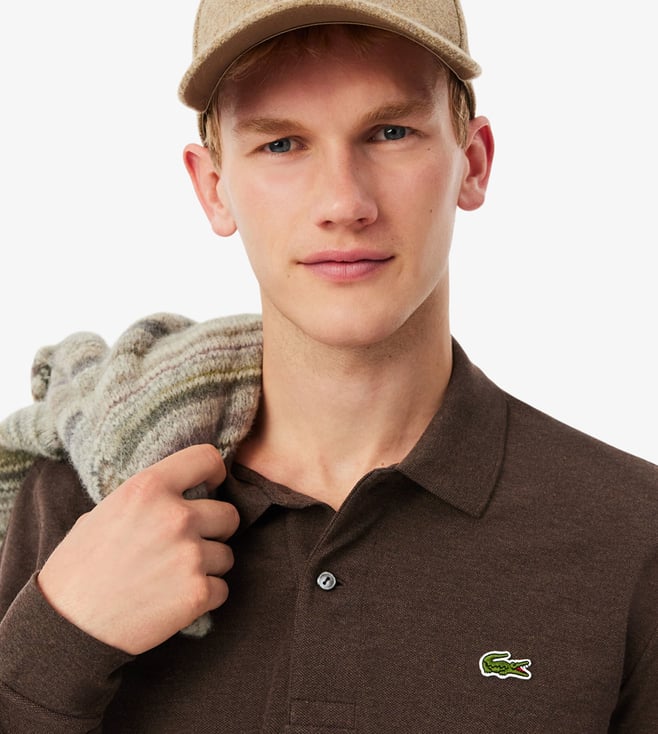 Elevate your casual wardrobe with the timeless sophistication of the Lacoste brown l.12.12 Classic fit polo t-shirt. Crafted from premium materials, this iconic piece features a classic fit that effortlessly flatters every body type. The rich brown hue adds a touch of refinement, while the signature crocodile logo on the chest exudes luxury and status. Whether you're dressing up for a night out or keeping it casual on the weekend, this versatile polo shirt is a must-have staple that combines comfort and style effortlessly.