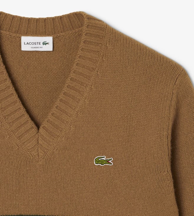 Lacoste Brown Striped Classic Fit Sweater
