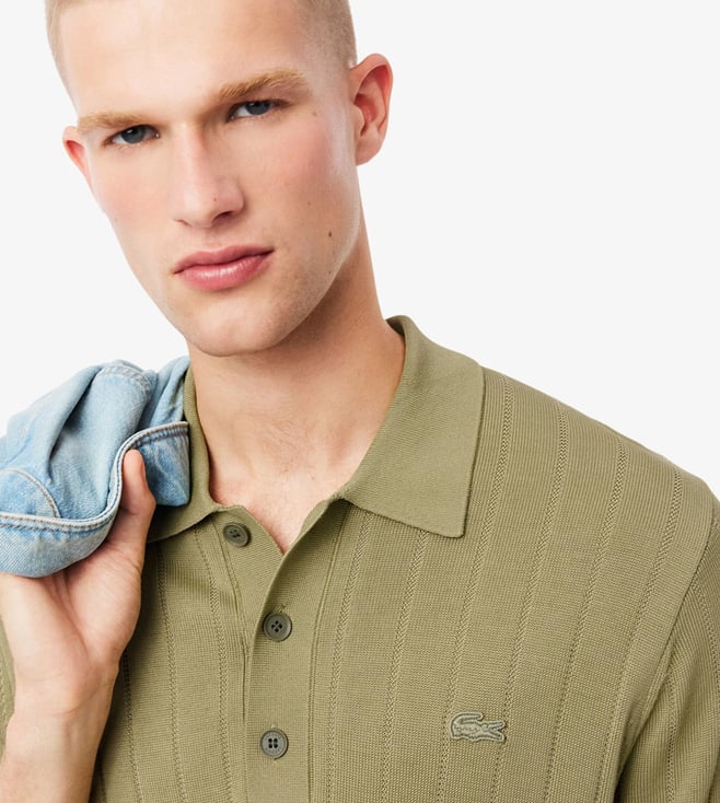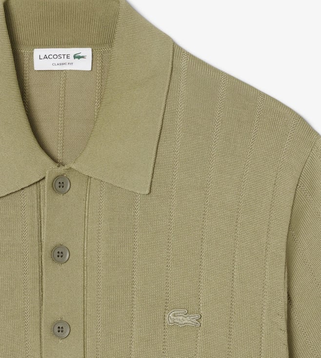 Elevate your style with the Lacoste green fluid rib knit stripes classic fit sweater. This versatile piece combines modern design with classic comfort, featuring a stylish rib knit pattern and a flattering classic fit. Whether you're dressing up for a night out or staying cozy at home, this sweater is the perfect choice. Made with high-quality materials, it offers both durability and a luxurious feel. Stay on-trend and comfortable with this must-have addition to your wardrobe.