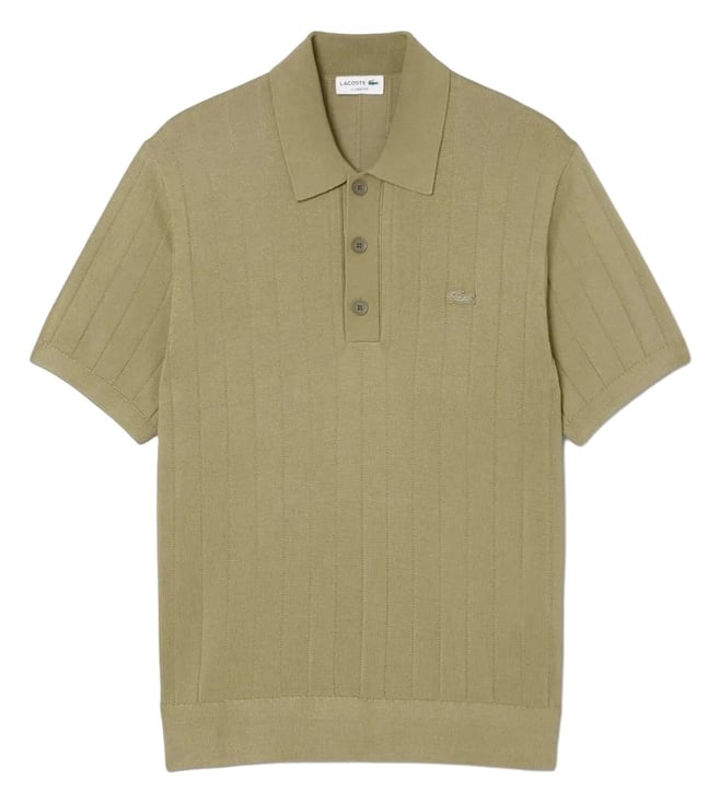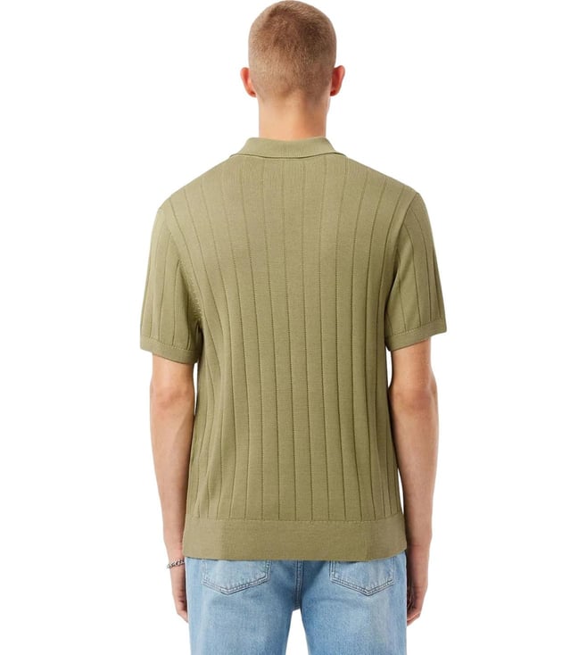 Lacoste Green Fluid Rib Knit Striped Classic Fit Sweater