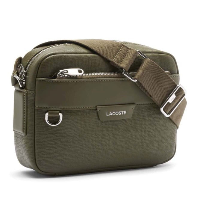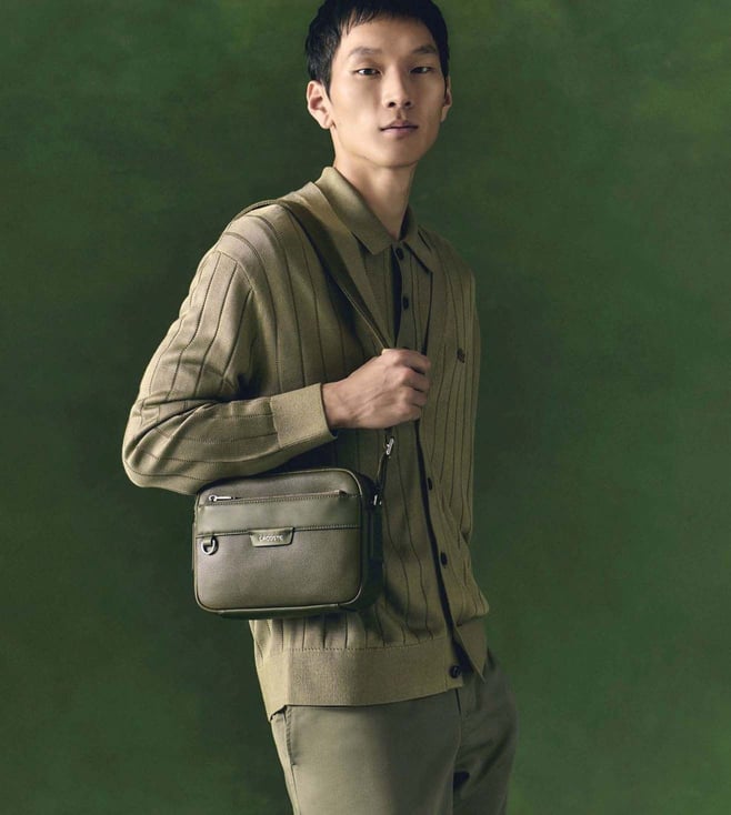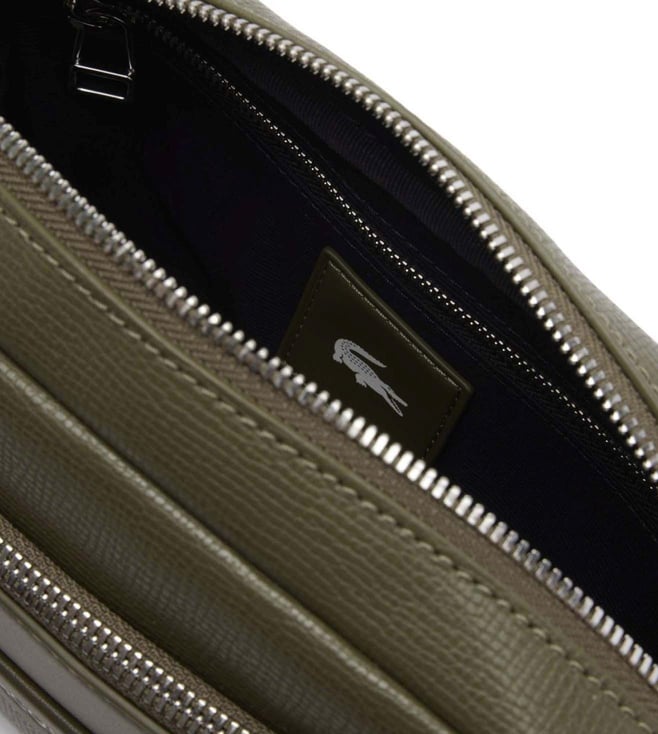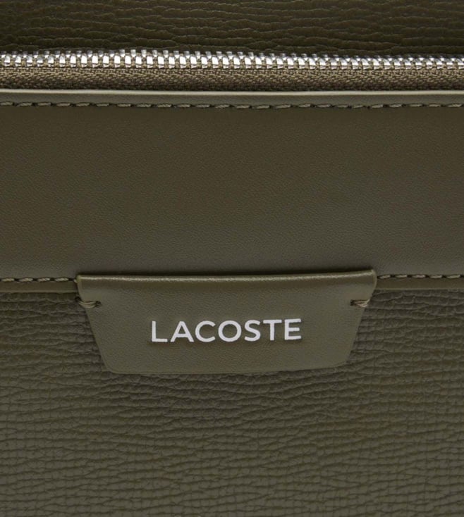 Lacoste Green Ossian Textured Medium Leather Reporter Bag
