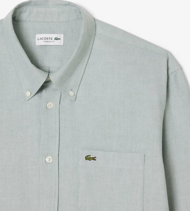 Elevate your wardrobe with the Lacoste green oxford regular fit Oxford Shirt. Crafted with quality materials and a timeless design, this Oxford Shirt blends classic style with modern comfort. The regular fit ensures a flattering silhouette, while the iconic Lacoste crocodile logo adds a touch of sophistication. Perfect for both casual and formal occasions, this Oxford Shirt is a versatile staple that effortlessly exudes style and confidence. Upgrade your look with the Lacoste green oxford regular fit Oxford Shirt today.