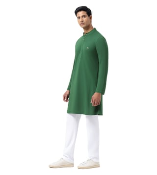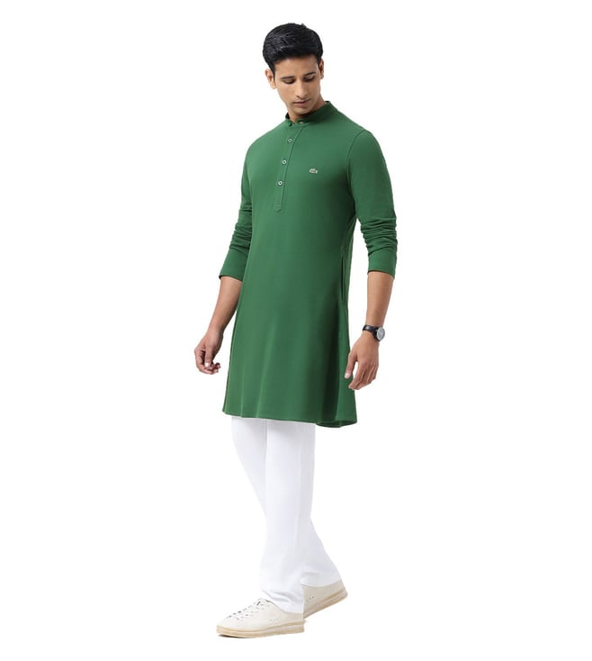 Elevate your wardrobe with the Lacoste Green Slim Fit Kurta, a modern twist on a traditional classic. Crafted from premium materials, this kurta features a sleek slim fit design that effortlessly combines comfort and style. Perfect for both casual and formal occasions, this versatile piece exudes sophistication and elegance. Stand out from the crowd and make a statement with the timeless appeal of the Lacoste Green Slim Fit Kurta.