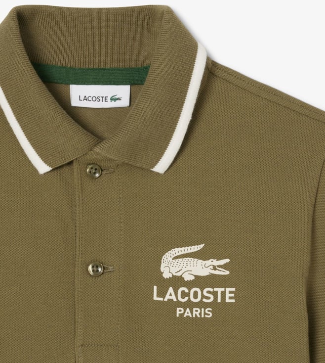 Elevate your sportswear style with the Lacoste Grey Petit Pique Regular Fit T-Shirt. Crafted from organic cotton piqu¿ and elastane, this shirt boasts a striped polo collar and the iconic embroidered crocodile logo at the hem. Perfect for young athletes, this elegant and supple shirt combines premium touches with the classic Lacoste design, making it a must-have addition to your wardrobe. Stand out with sophistication and style in this timeless piece.