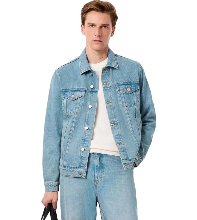 Sky Blue Crocodile Regular Fit Denim Jacket