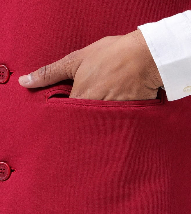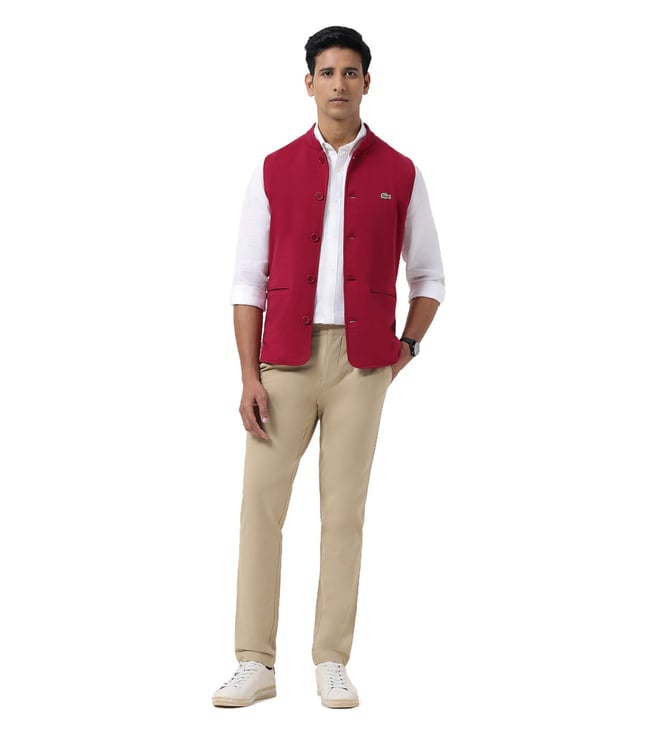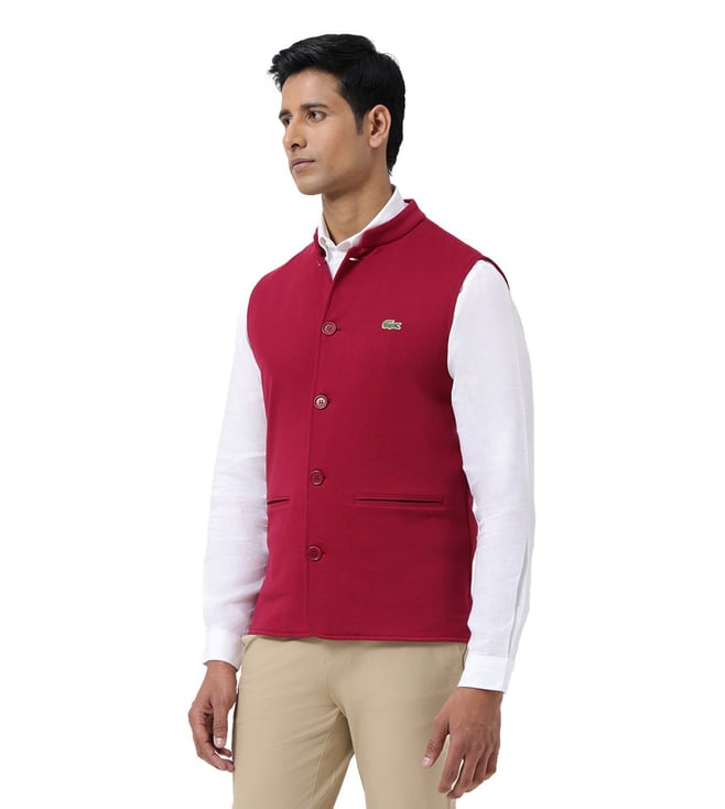 Elevate your style with the Lacoste Maroon Slim Fit Jacket. This sleek and sophisticated jacket is perfect for the modern man looking to make a statement. The slim fit design offers a tailored look that is both flattering and comfortable. With its rich maroon color and Nehru collar, this jacket exudes confidence and elegance. Crafted from high-quality fleece fabric, this jacket is perfect for any occasion, whether it's a formal event or a night out on the town. Make a bold fashion statement with the Lacoste Maroon Slim Fit Jacket.