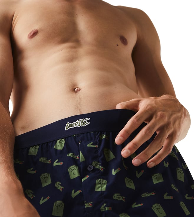 These boxers are made of cotton in a classic fit. The waistband is decorated with a "handwritten" Lacoste badge and the all-over print is an original crocodile mix. Pack comprises of two pairs of plain-coloured boxers and one pair of printed boxers.