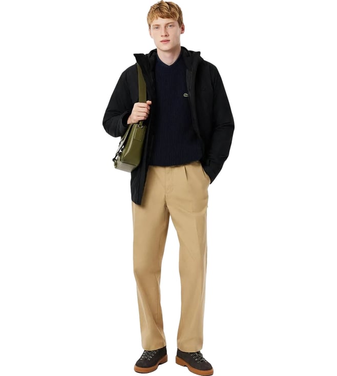 Elevate your casual wardrobe with our Lacoste navy blue thick carded classic fit sweater. Crafted with premium materials, this sweater offers unparalleled comfort and style. The classic fit drapes effortlessly for a timeless look, while the thick carded fabric provides warmth and durability. Whether you're running errands or meeting friends for coffee, this sweater will keep you cozy and stylish all day long. Upgrade your sweater game with this versatile piece from Lacoste.