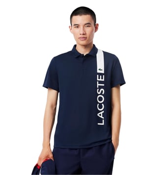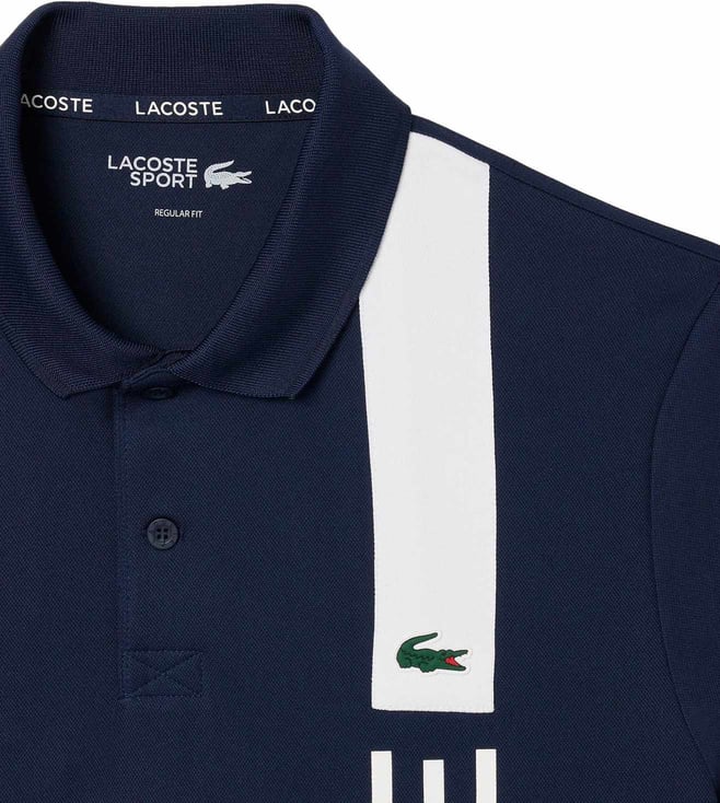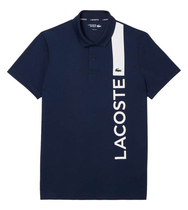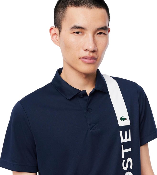Lacoste Navy Ultra Dry Print Branding Sport Polo T-Shirt