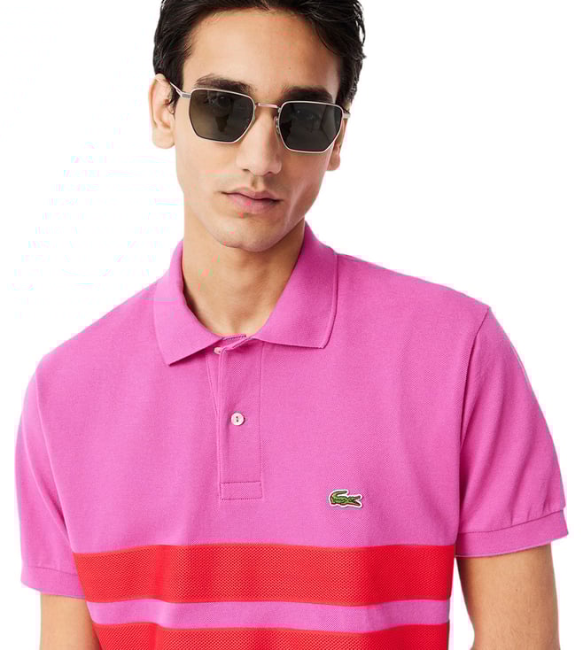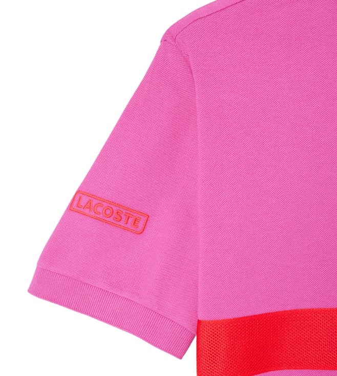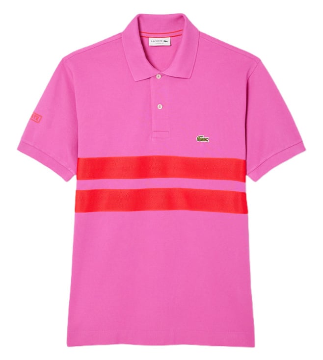 Lacoste Pink French Made L.12.12 Striped Classic Fit Polo T-Shirt