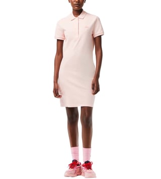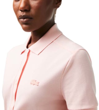 This Women's Stretch Cotton Piqu¿ Polo Dress has four-button ribbed polo collar. This slim fit dress is made of stretch mini cotton piqu¿. It features ribbed finishes at sleeve ends. Embroidered tonal crocodile branding on chest. Cotton (94%), Elastane (6%).