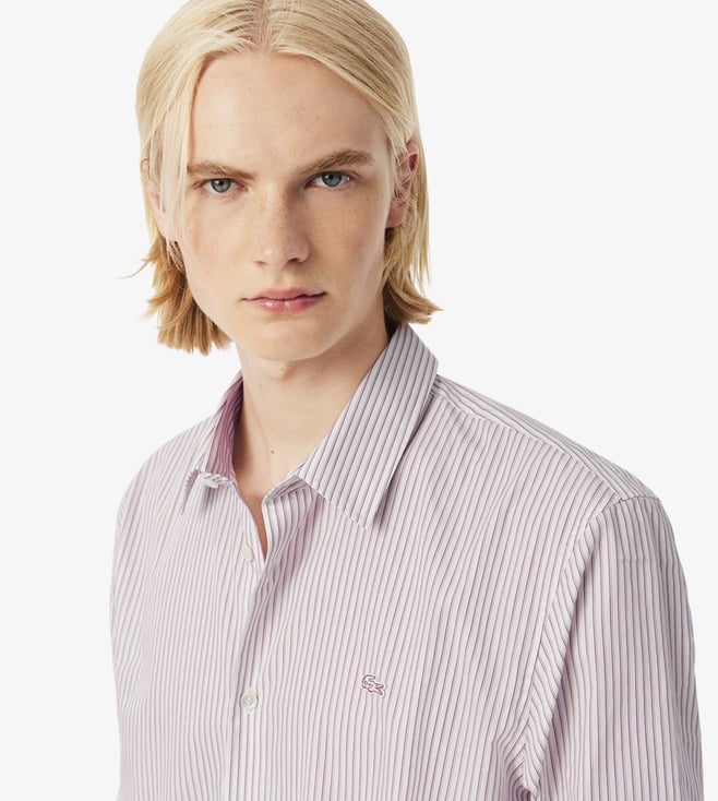 Lacoste Pink Striped Regular Fit Poplin Shirt