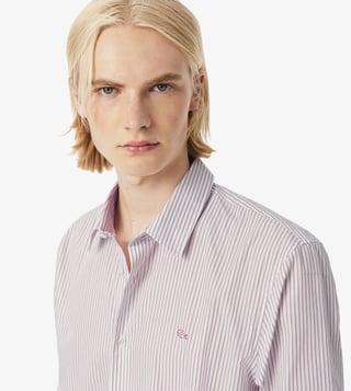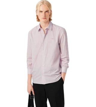 Elevate your everyday style with the Lacoste pink poplin stripes regular fit shirt. Crafted from high-quality cotton poplin, this shirt offers a comfortable and breathable fit. The eye-catching pink stripes add a pop of color to your wardrobe, making it perfect for both casual and formal occasions. The regular fit ensures a flattering silhouette for all body types. Whether you're heading to the office or out for a night on the town, this shirt is sure to make a statement. Upgrade your wardrobe with this versatile and stylish piece from Lacoste.