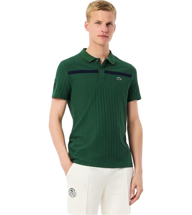 Green Ultra Dry Badge Accent Tennis Heritage Striped Regular Fit Polo T-Shirt