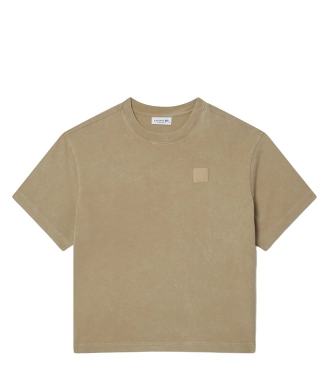 Beige Oversized Wash Effect Badge T-Shirt