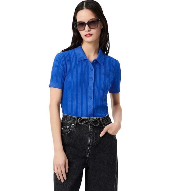 Blue Ribbed Knit Striped Regular Fit Sweater