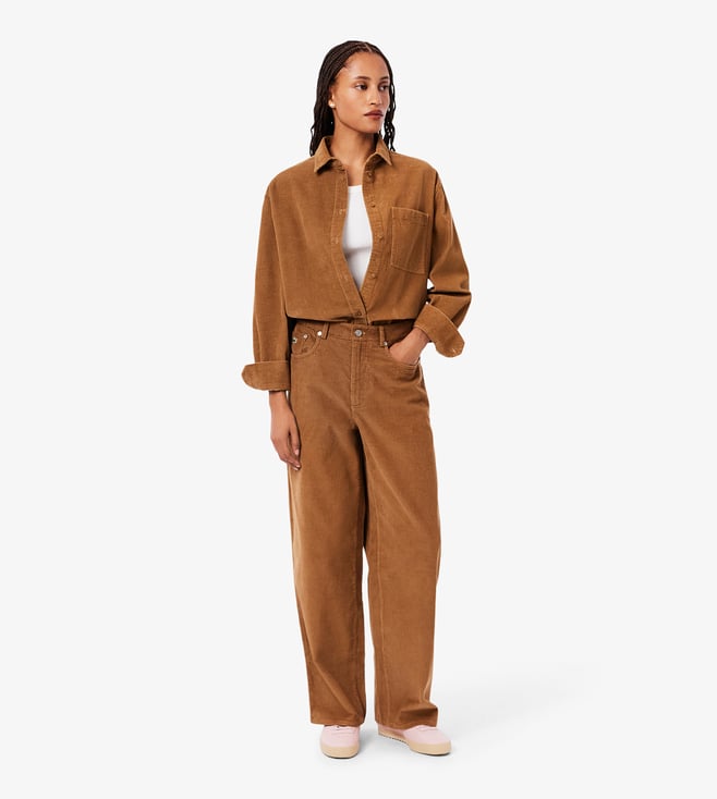 Brown Cotton Relaxed Fit Mid Rise Trouser