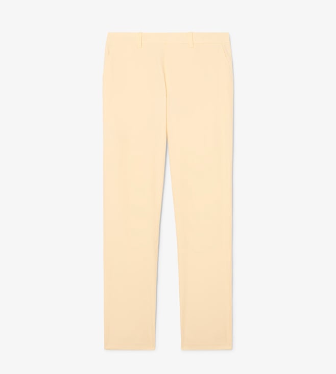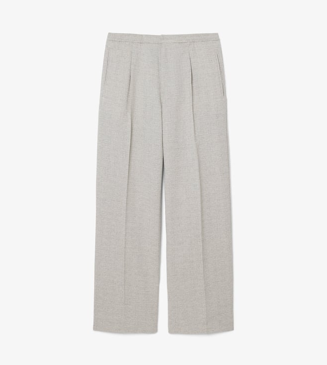 Beige Flared Leg Mid Rise Loose Fit Pleated Stretch Gabardine Pants