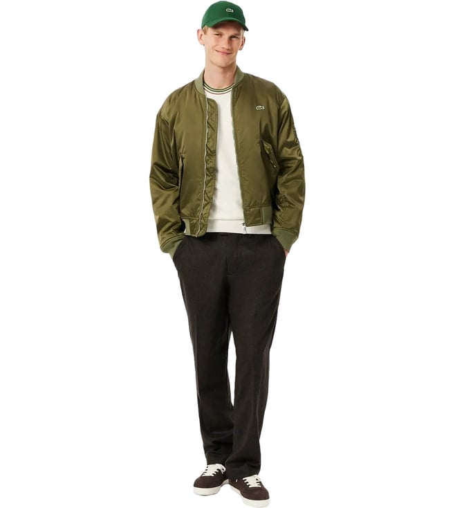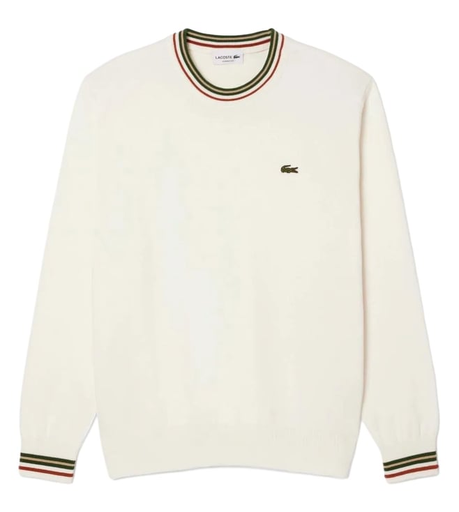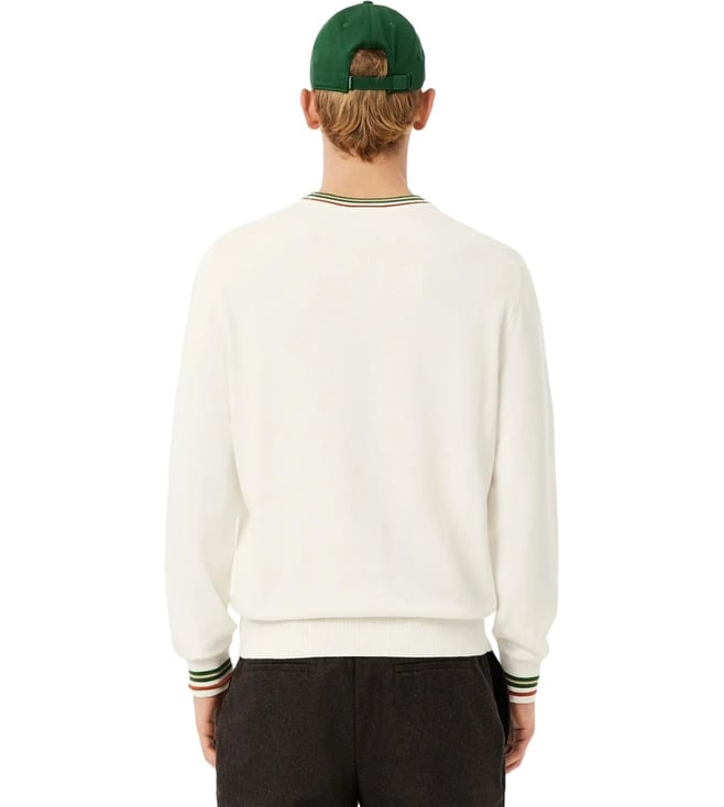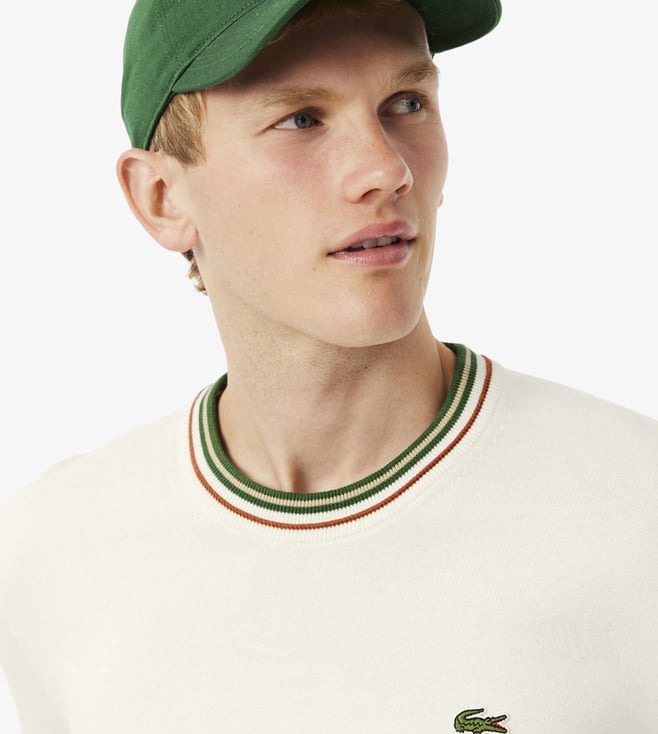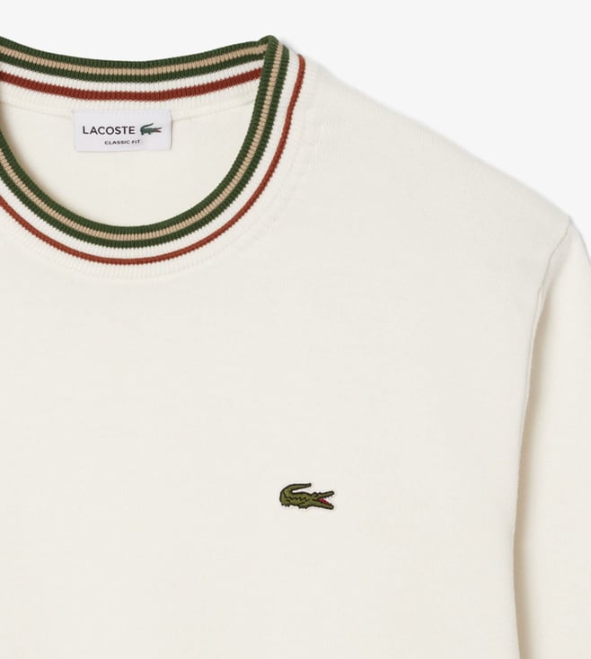 Elevate your everyday style with the Lacoste white classic fit jersey sweater. Crafted from soft, premium jersey fabric, this sweater offers a comfortable and relaxed fit that is perfect for any occasion. The iconic Lacoste crocodile logo adds a touch of sophistication, while the classic white color makes it easy to pair with any outfit. Stay cozy and effortlessly stylish with this timeless wardrobe essential.