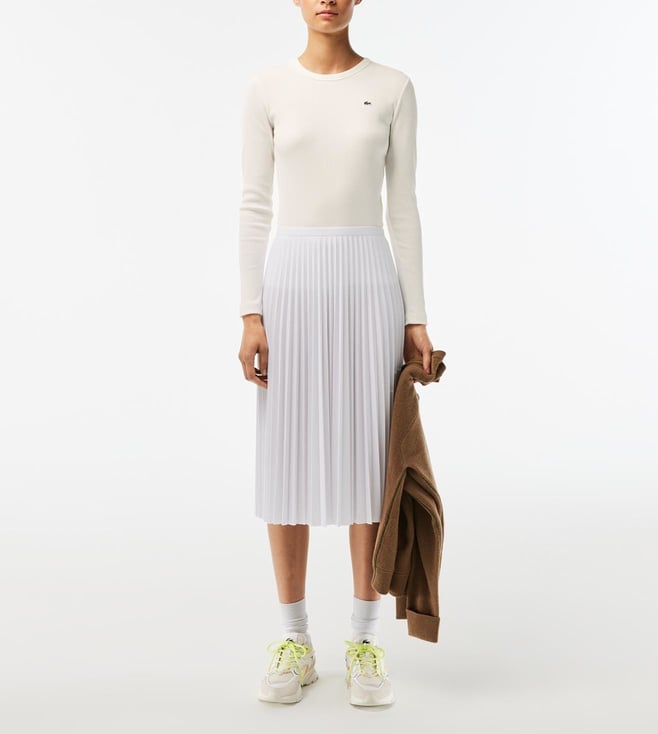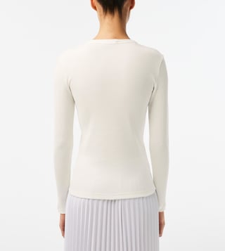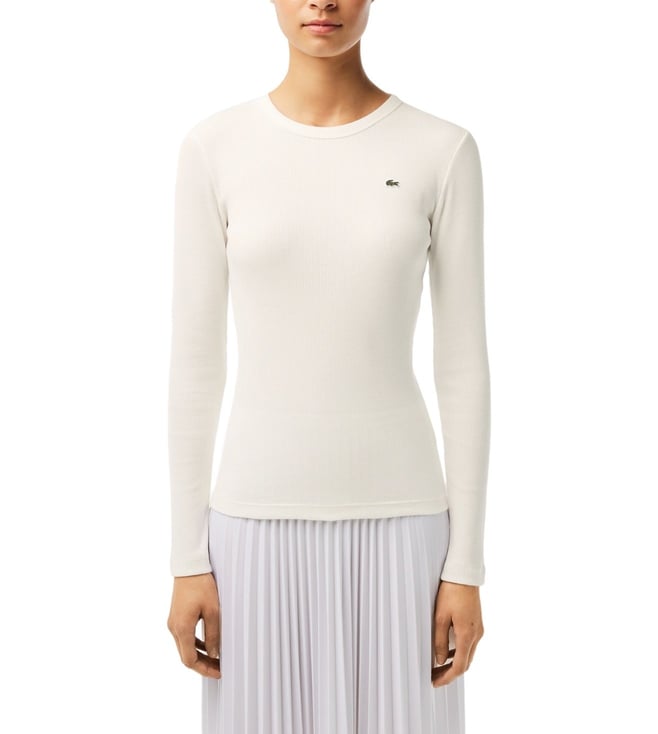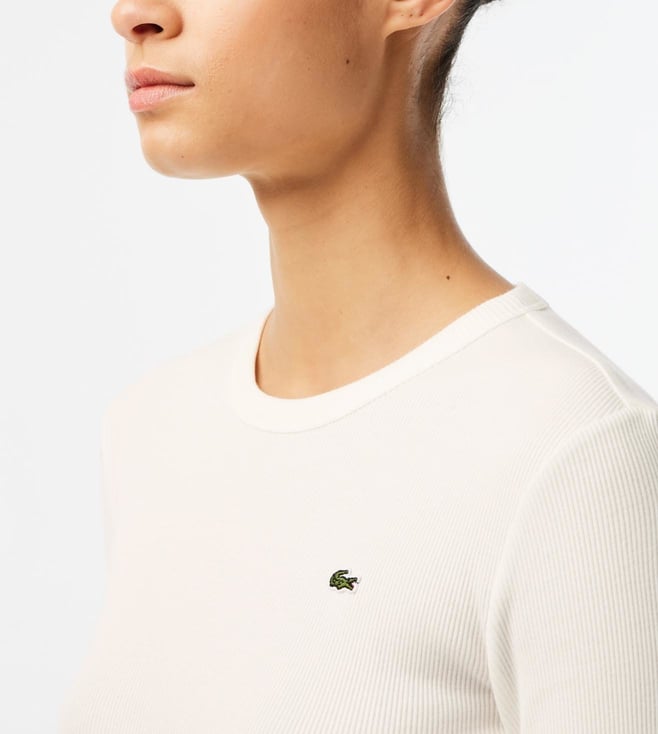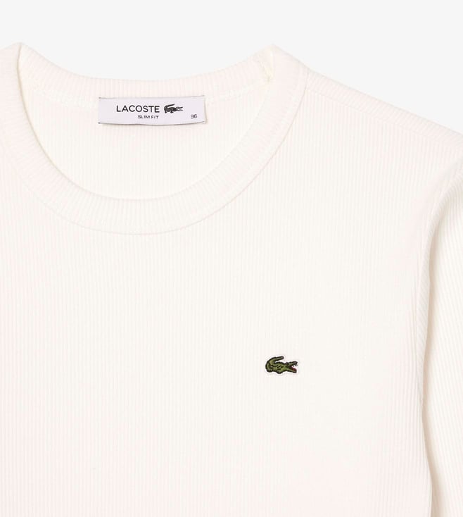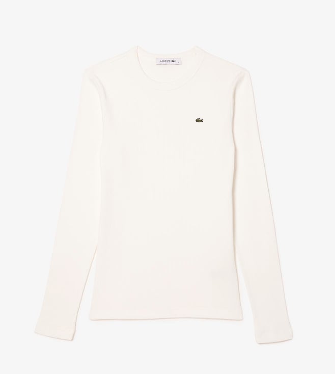 Lacoste White Long Sleeved Ribbed Cotton T-Shirt