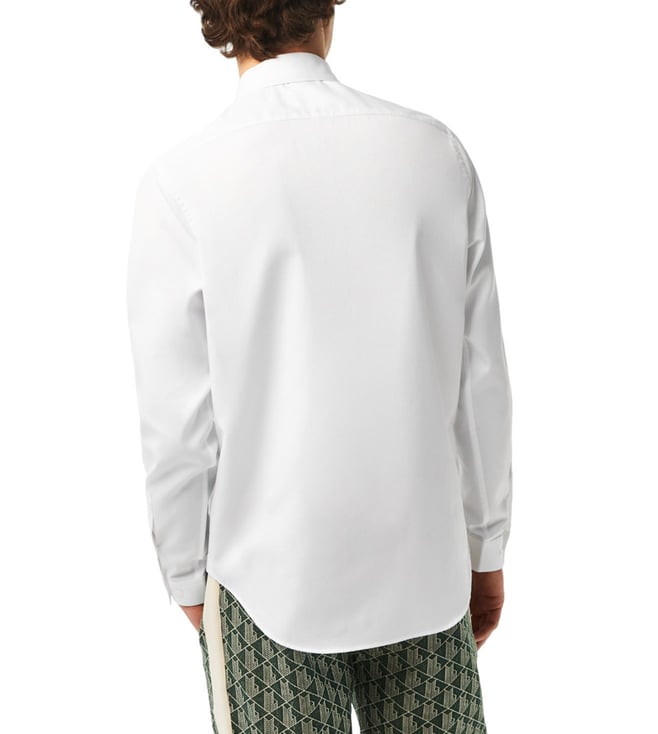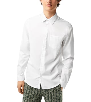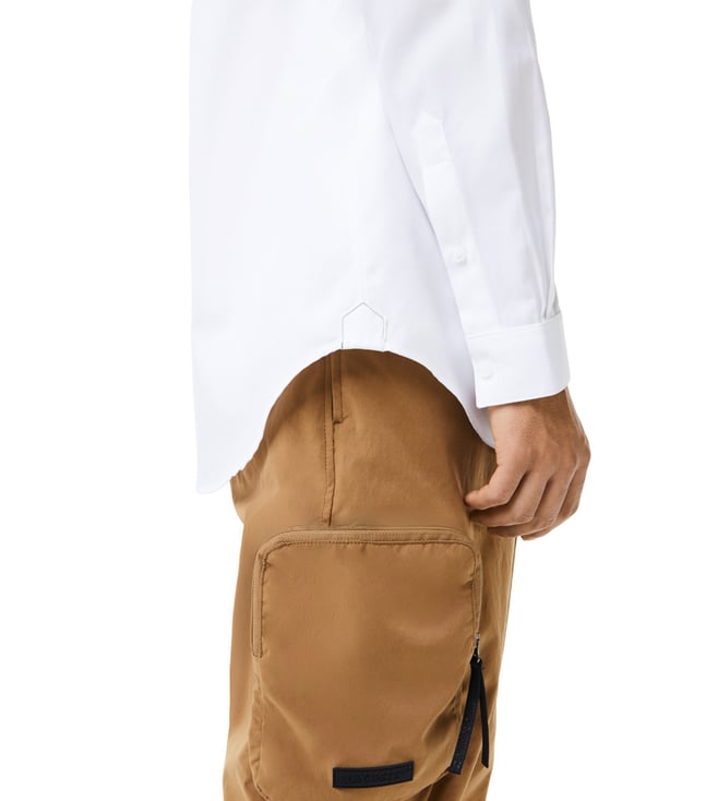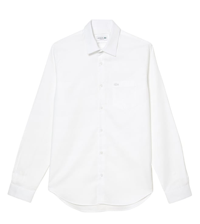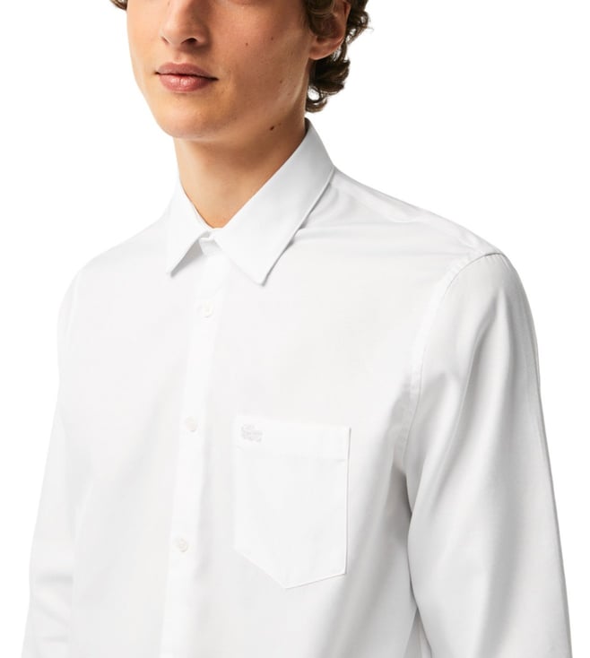 The fine fabric with a gentle, silky texture makes this shirt ultra-elegant. With signature buttons and exquisite finishes, it is topped with a small tone-on-tone embroidered crocodile on the chest pocket. Keep it elegant when you tuck it into solid suit pants.