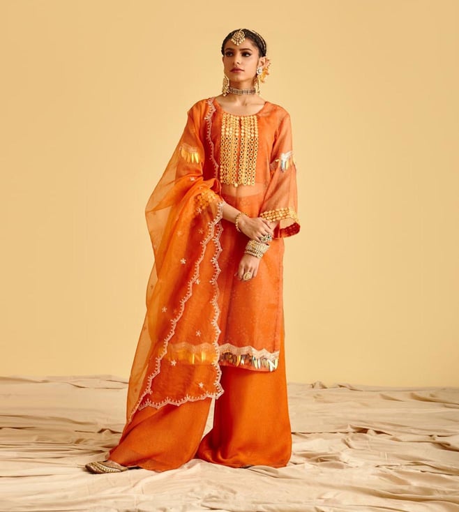 Tangerine Orange Suhaani Noori Kurta With Pant And Dupatta