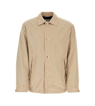 Elevate your style with the Lanvin Beige Oversized Fit Windbreaker Jacket. Collar long sleeves front button closure. Products purchased from Darveys are supported exclusively by the warranty/exchange policies of Darveys and its partner boutiques. Brand owners and their channel partners are not responsible for exchange/warranty services for items purchased through Darveys.