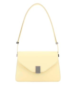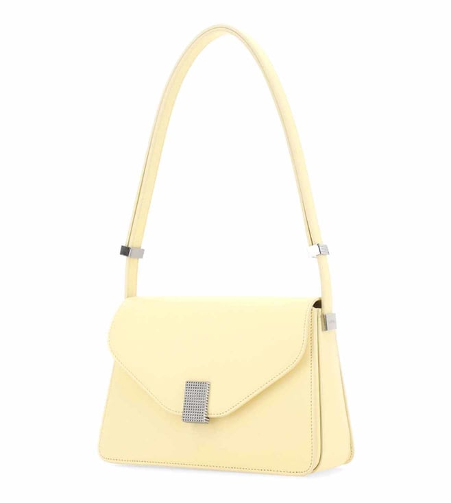 Expand the collection of your accessories in a trendy way with this bag from Lanvin. Light yellow, shoulder bag, leather silver-tone hardware internal logo stamp main compartment internal slip pocket foldover top clip-lock fastening adjustable top handle.