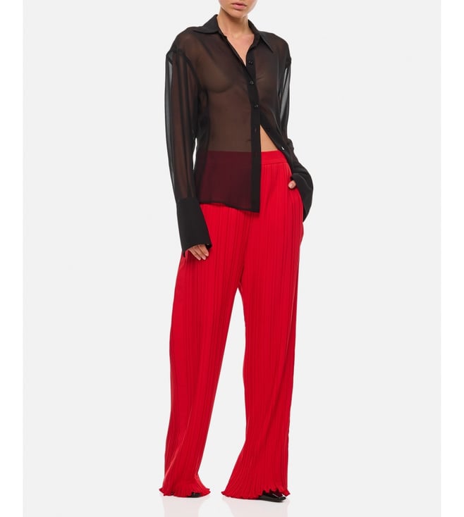 Elevate your wardrobe with the Lanvin Red Loose Fit Trousers. Designed with elastic waist. long length. wide leg fit. color: red. these trousers combine comfort and sophistication for everyday wear. Products purchased from Darveys are supported exclusively by the warranty/exchange policies of Darveys and its partner boutiques. Brand owners and their channel partners are not responsible for exchange/warranty services for items purchased through Darveys.