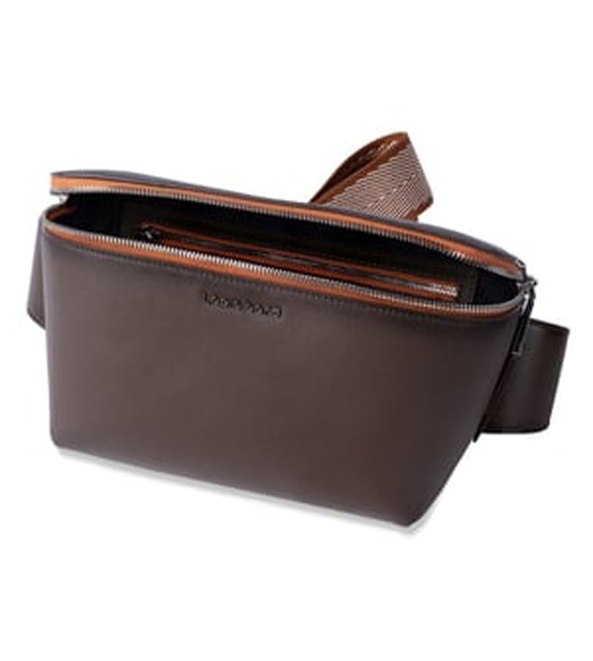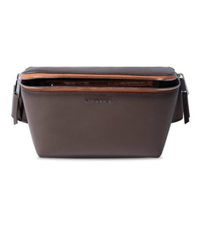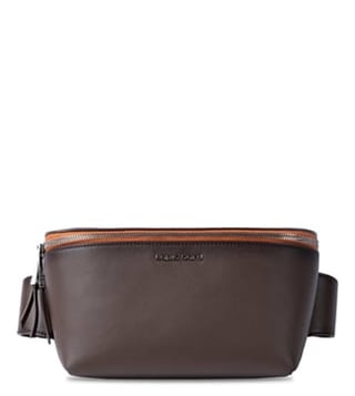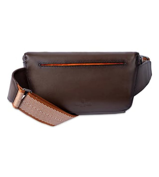 Your perfect travel companion is here. Lapis Bard introduces a crossbody bag in the Aster collection. This trendy, modern, and stylish bag is chocolate brown in colour with accents of rust orange and chrome two-way zipper. If you enjoy riding or shopping hands-free, this crossbody is your best friend. It comes with an adjustable herringbone pattern strap. There s just no wrong way to wear it it simply matches everything. The bag is made of Italian leather, is easy to handle and can be used daily. It comes with an extra pocket at the back for your phone and money.