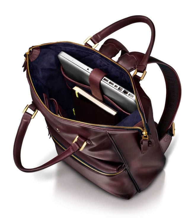 Want the comfort of a backpack with the elegance of a business bag. The Ducorium Roxton in glorious bordeaux is just that, and more. It stands with a dignified, upright stance clothed in the finest leather, without a wire out of place, as you wander on work or play with your hands free. A 15 inch laptop compartment makes even a large computer at home in its welcoming space. An external zippered compartment is commodious enough to house all the things you want quick access to. All of which means when you are not wearing it, you will be patting yourself on the back for getting it.